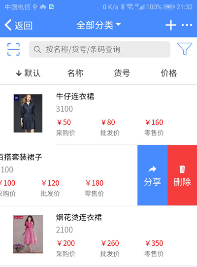 在商品列表页面,使用手指在要分享的商品上轻轻向左滑动,会出来【分享】按钮,点击即可分享当前商品给朋友