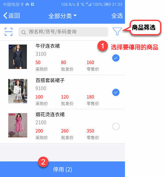 为了确保数据的完整准确性,商品一旦被使用,就无法删除,只能停用