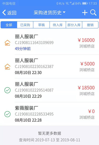 如果采购单开错了,可以撤销本单据,撤销后的单据状态变为撤销状态,并同步更新库存和财务数据