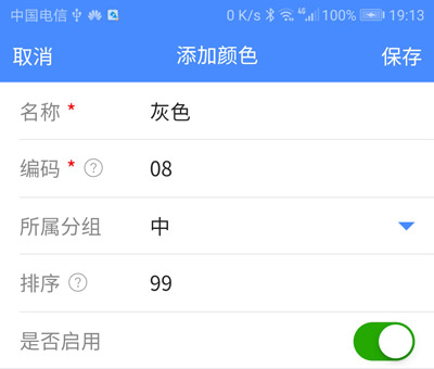 在【查看颜色】页面中点击【新增颜色】,即可进入添加颜色页面