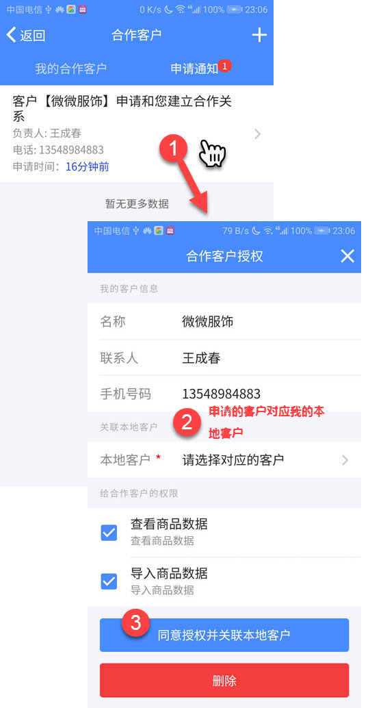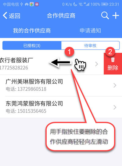 深圳衣行者服装厂删除合作客户【李黎明】后,两者是相互的关系,李黎明也会自动删除合作供应商【深圳衣行者服装厂】
