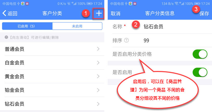 如:商品:牛仔连衣裙,可以设置普通会员的价格是160,黄金会员的价格是120