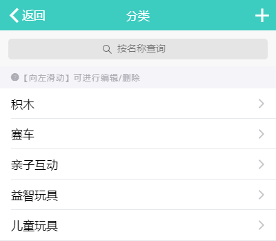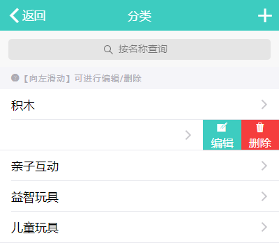 用手指轻轻向左滑动要删除的分类,会弹出一组按钮,点击【删除】即可
