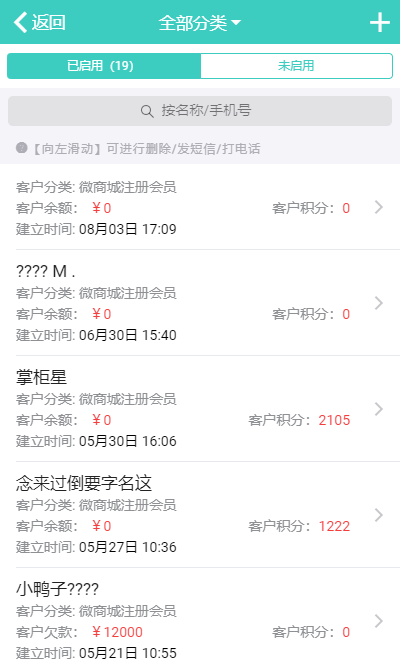 为了确保数据的完整准确性,客户一旦被使用,就无法删除,只能停用