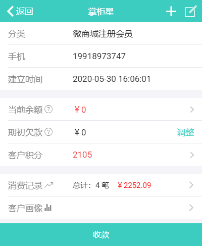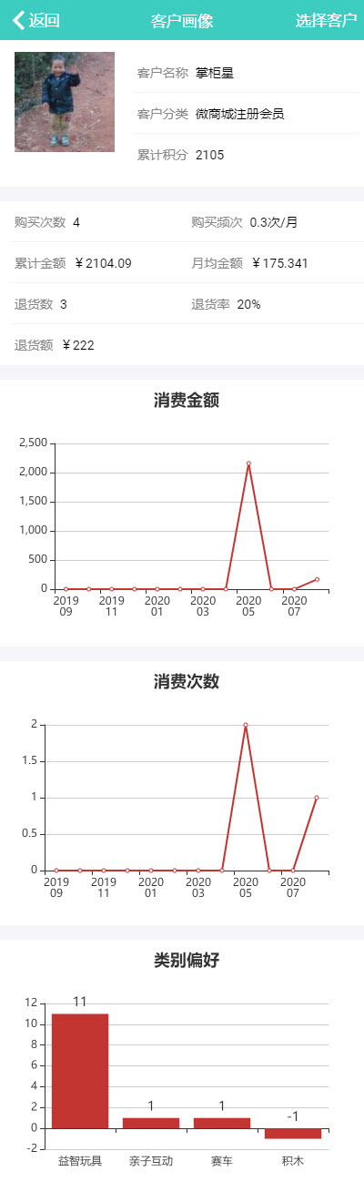 客户管理包含:添加、删除、修改客户;查看客户积分;查看消费明细、客户画像