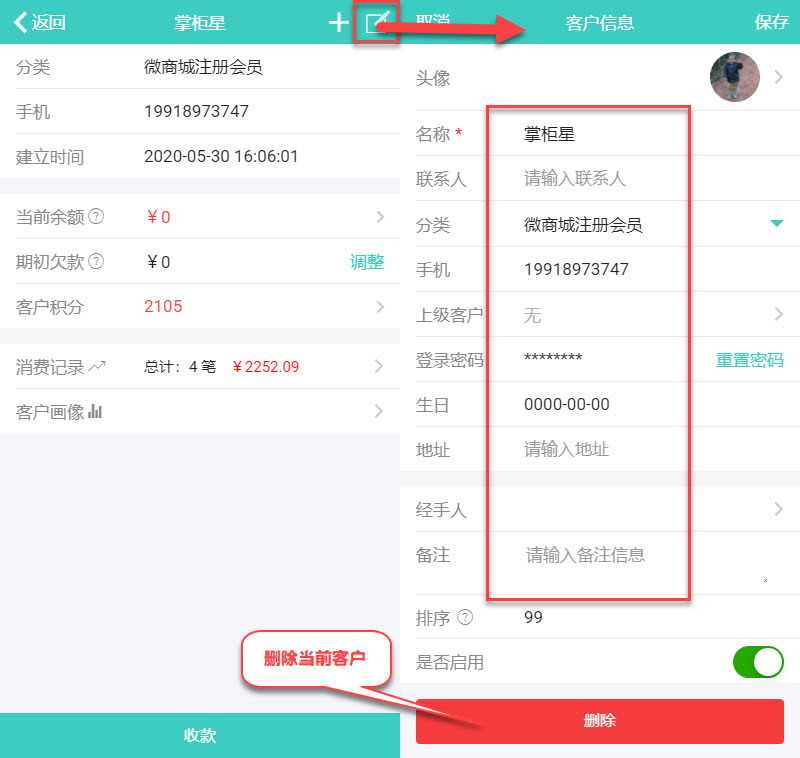 ,点击客户,进入客户明细页面,点击【编辑】,可以修改当前客户