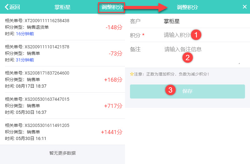 点击调整积分,管理员可以人工赠送或扣除积分;如:积分兑换礼品后,可以扣除指定积分