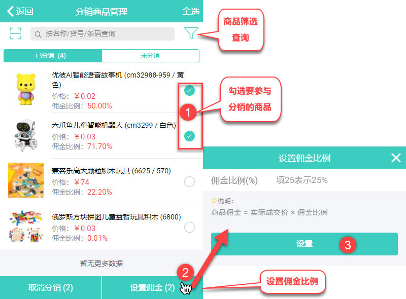 2、设置佣金
