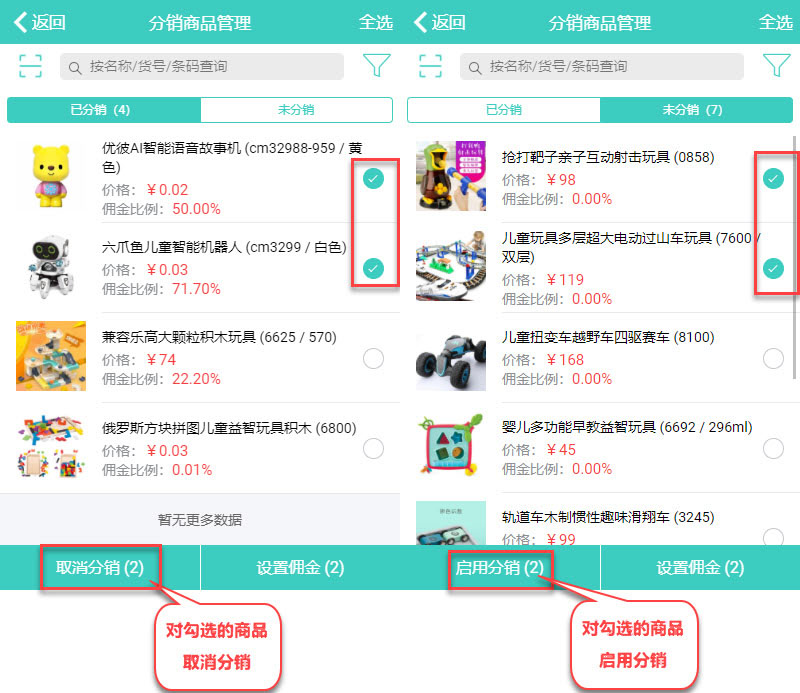1、启用分销和取消分销