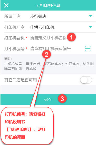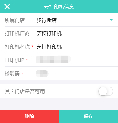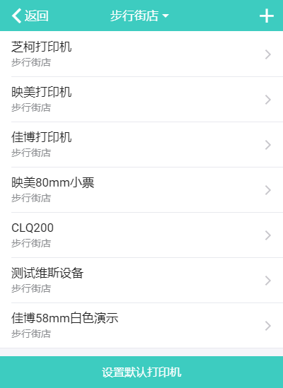 列出当前门店所有的可用打印机,点击标题栏【门店】可以查看其他门店的打印机