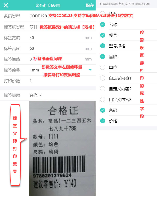 支持2种方式打印条码,在介绍打印条码之前,先介绍条码打印设置