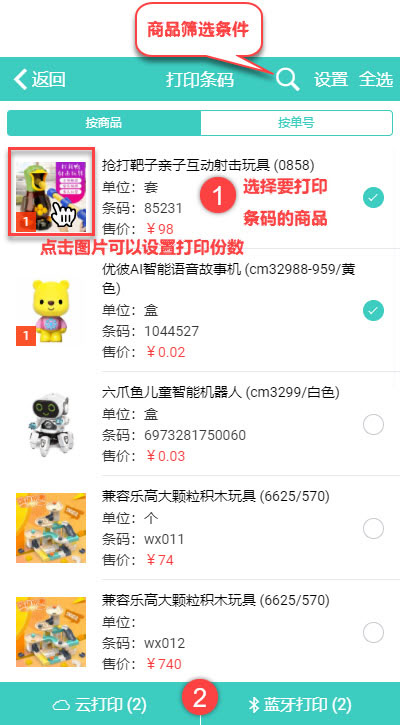 自由选择要打印条码的商品