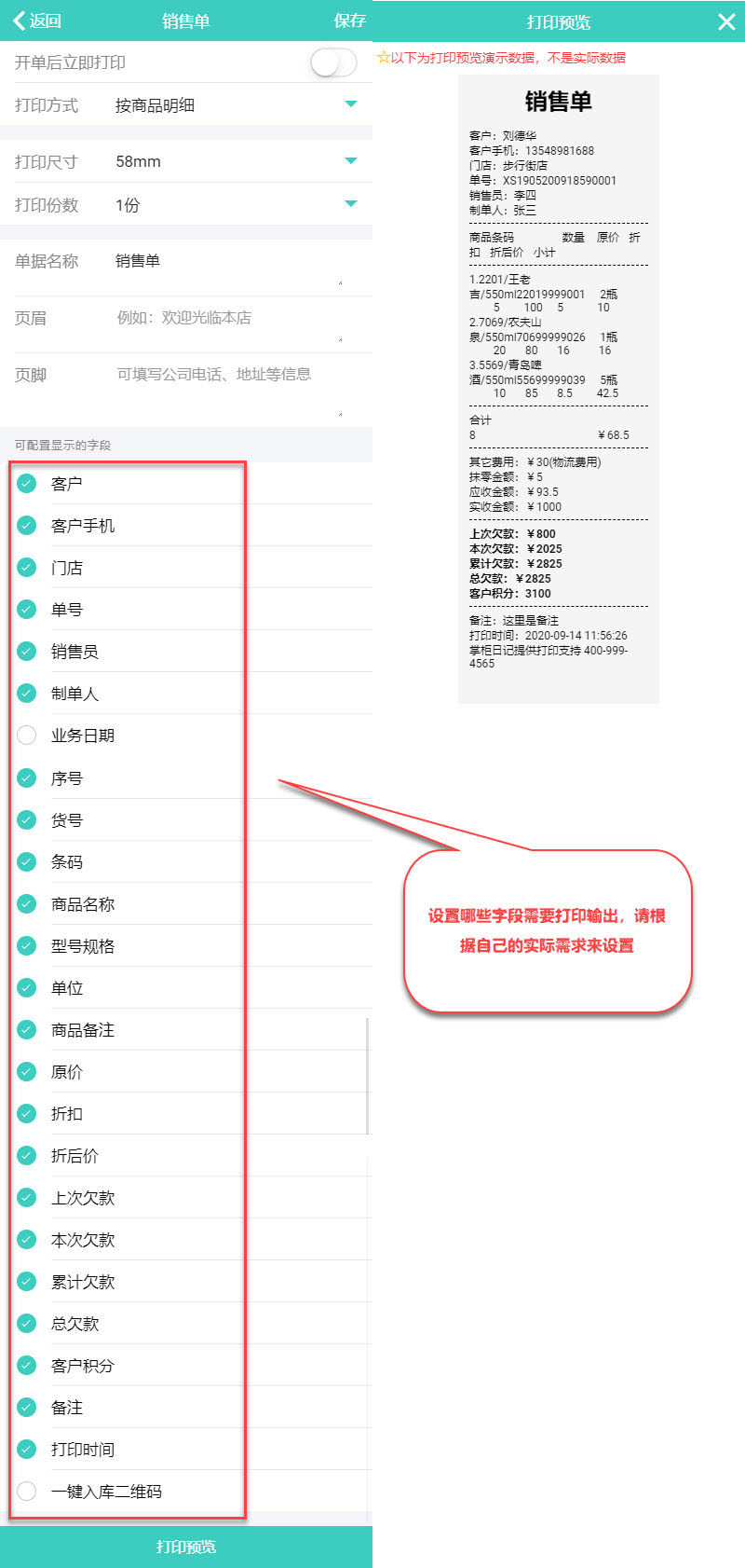 【系统设置】-【打印设置】-【销售单】