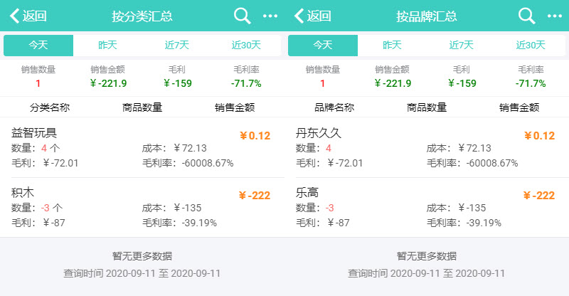 2、按分类汇总、按品牌汇总