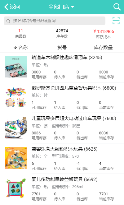 可以查询门店的库存数据,可以按门店、分类、品牌查询