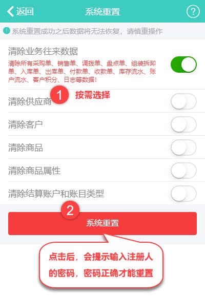 主要用于清除系统全部数据,请谨慎操作,一旦重置,数据将不可恢复