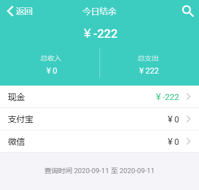 今日结余显示今天所有门店的收入和支出、不同的账户收了多少钱