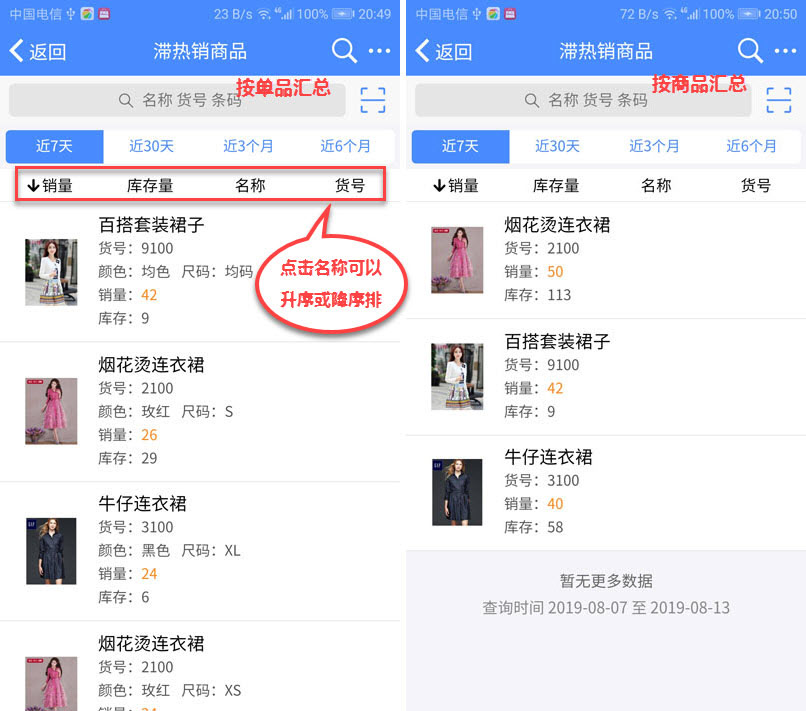 滞热销商品用于按销量显示当前热销商品和滞销商品,可以按单品汇总和商品汇总
