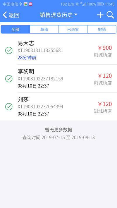 销售退货历史