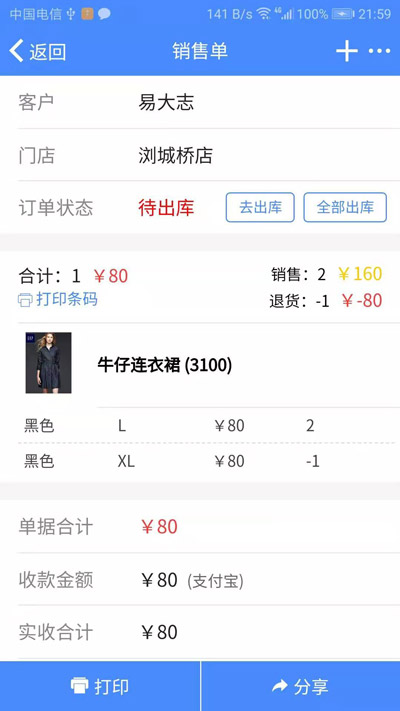 打印:用于打印当前销售单,可以设置开单后,自动打印
