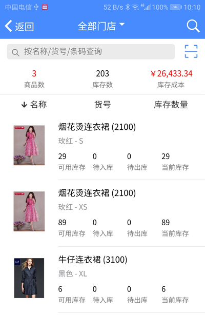 可以查询门店的库存数据,可以按门店、分类、品牌查询