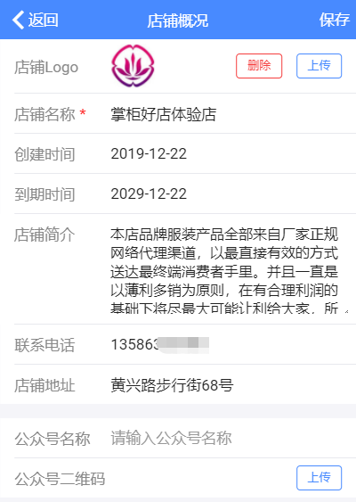 管理店铺logo、名称等信息,会展现在商城小程序的登录弹框等页面