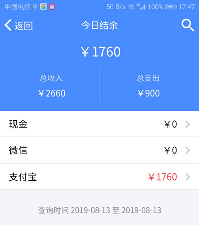 今日结余显示今天所有门店的收入和支出、不同的账户收了多少钱