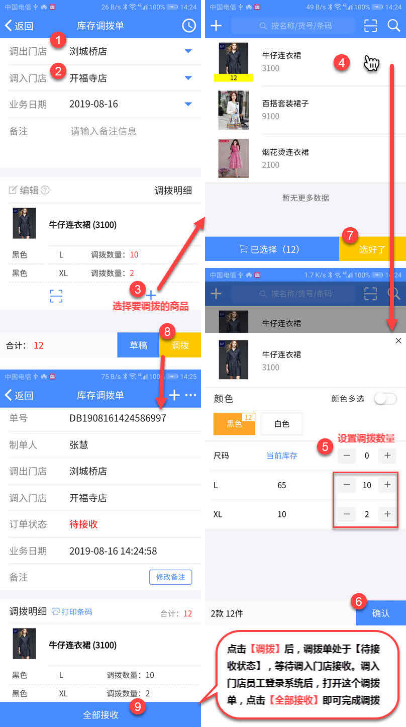 库存调拨指门店之间相互调货的过程,调拨完成后,调出门店库存减少,调入门店库存增加